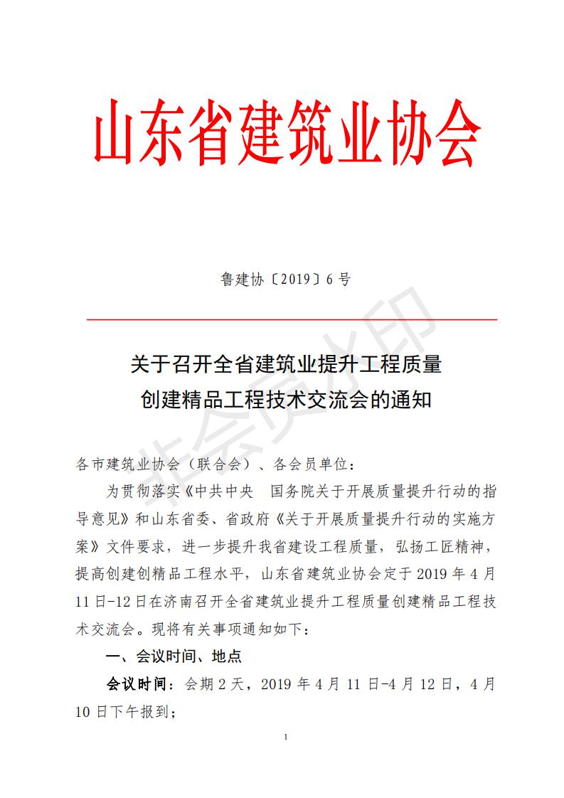 關于召開全省建筑業(yè)提升工程質(zhì)量創(chuàng)建精品工程技術(shù)交流會的通知