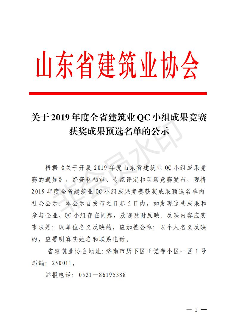 關(guān)于2019年度全省建筑業(yè)QC小組成果競賽獲獎成果預(yù)選名單的公示