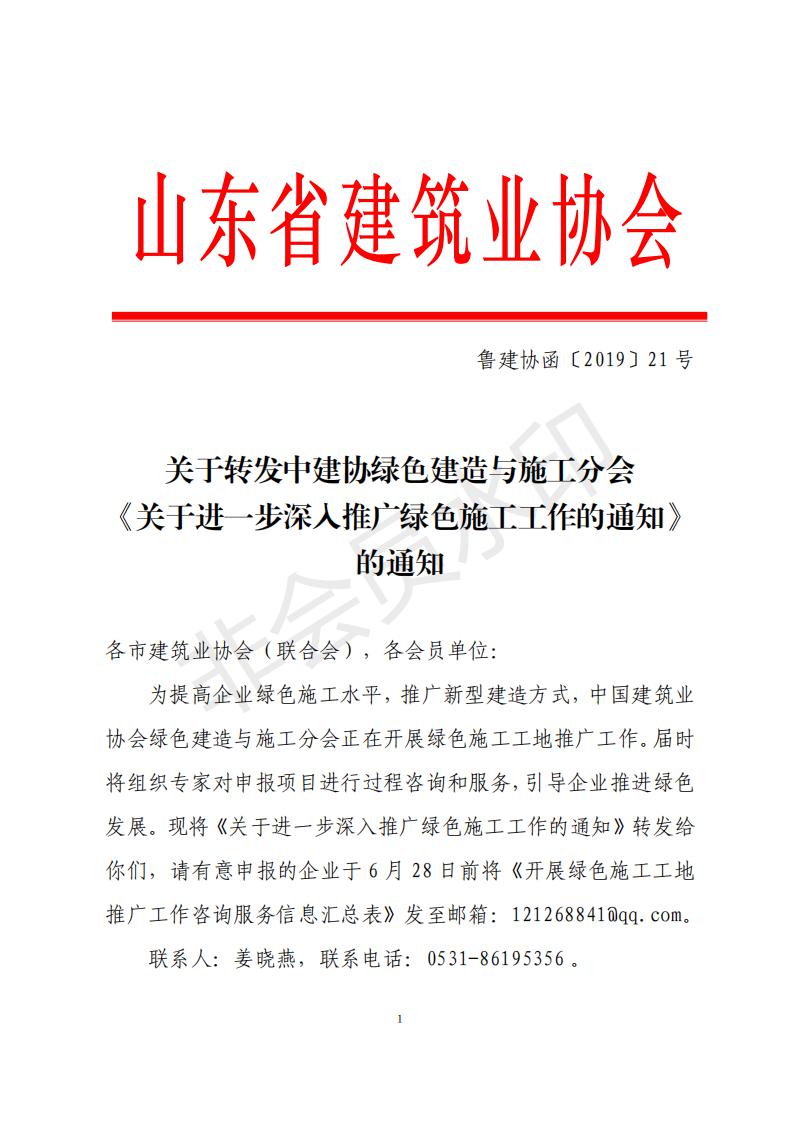 關(guān)于轉(zhuǎn)發(fā)中建協(xié)綠色建造與施工分會 《關(guān)于進(jìn)一步深入推廣綠色施工工作的通知》的通知