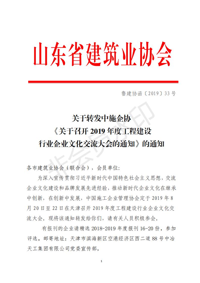 附件:中施企協(xié)《關(guān)于召開 2019 年度工程建設(shè)行業(yè)企業(yè)文 化交流大會的通知》.zip