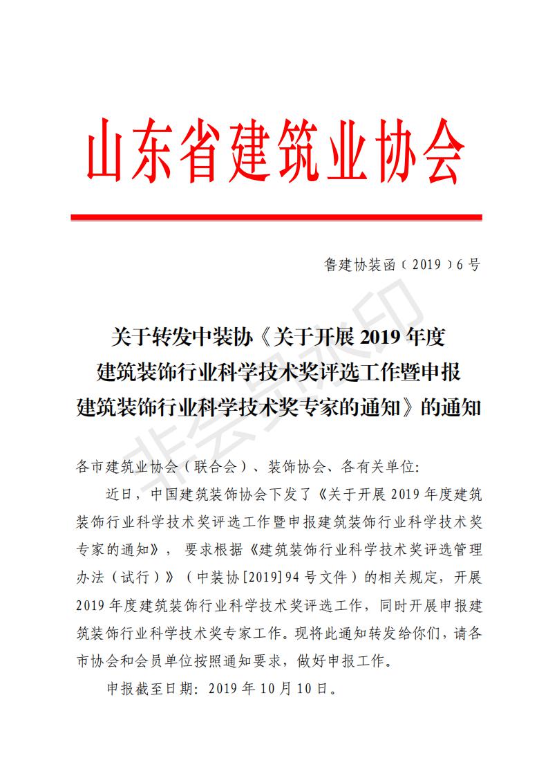 關(guān)于轉(zhuǎn)發(fā)中裝協(xié)《關(guān)于開展 2019 年度建筑裝飾行業(yè)科學(xué)技術(shù)獎(jiǎng)評選工作暨申報(bào)