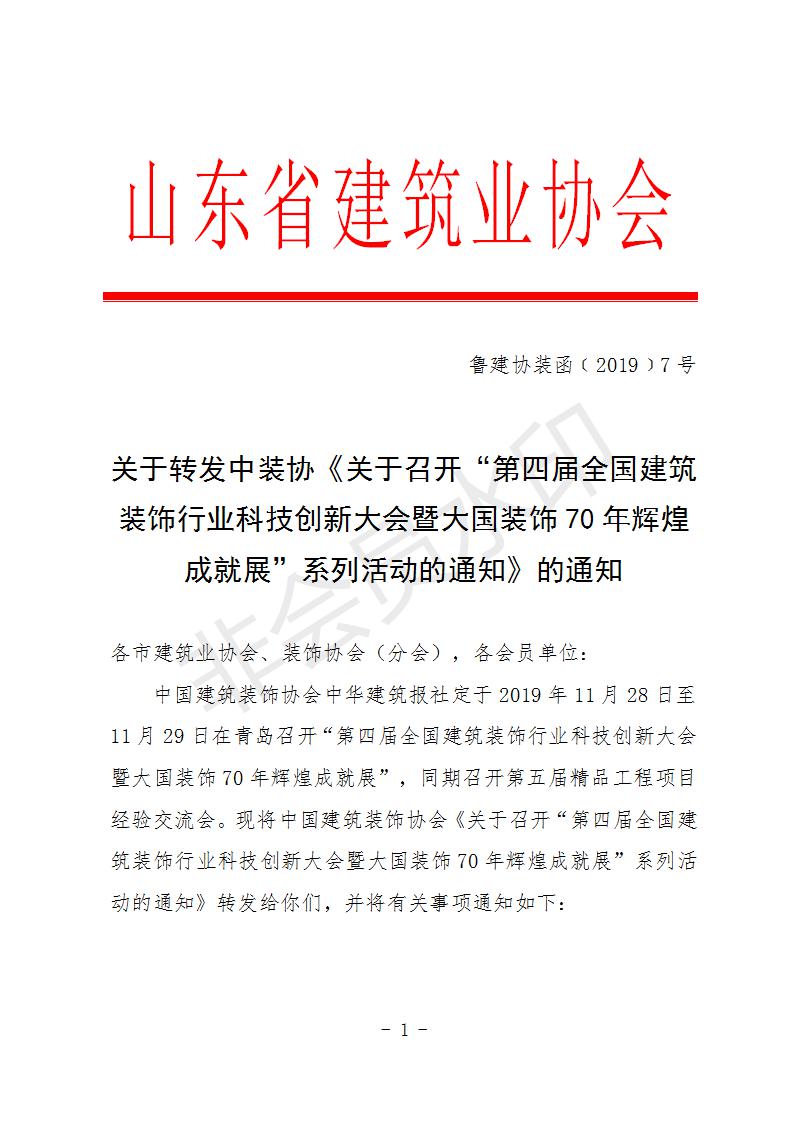 ![]() | 附件:中裝協(xié)《關(guān)于召開“第四屆全國(guó)建筑裝飾行業(yè)科技創(chuàng)新大會(huì)暨大國(guó)裝飾70年輝煌成就展”系列活動(dòng)的通知》 |