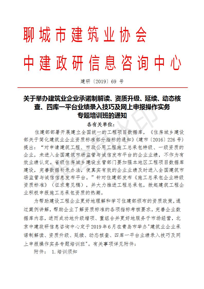 關(guān)于舉辦建筑業(yè)企業(yè)承諾制解讀、資質(zhì)升級(jí)、延續(xù)、動(dòng)態(tài)核查、 四庫(kù)一平臺(tái)業(yè)績(jī)錄入技巧及網(wǎng)上申報(bào)操作實(shí)務(wù) 專(zhuān)題培訓(xùn)班的通知