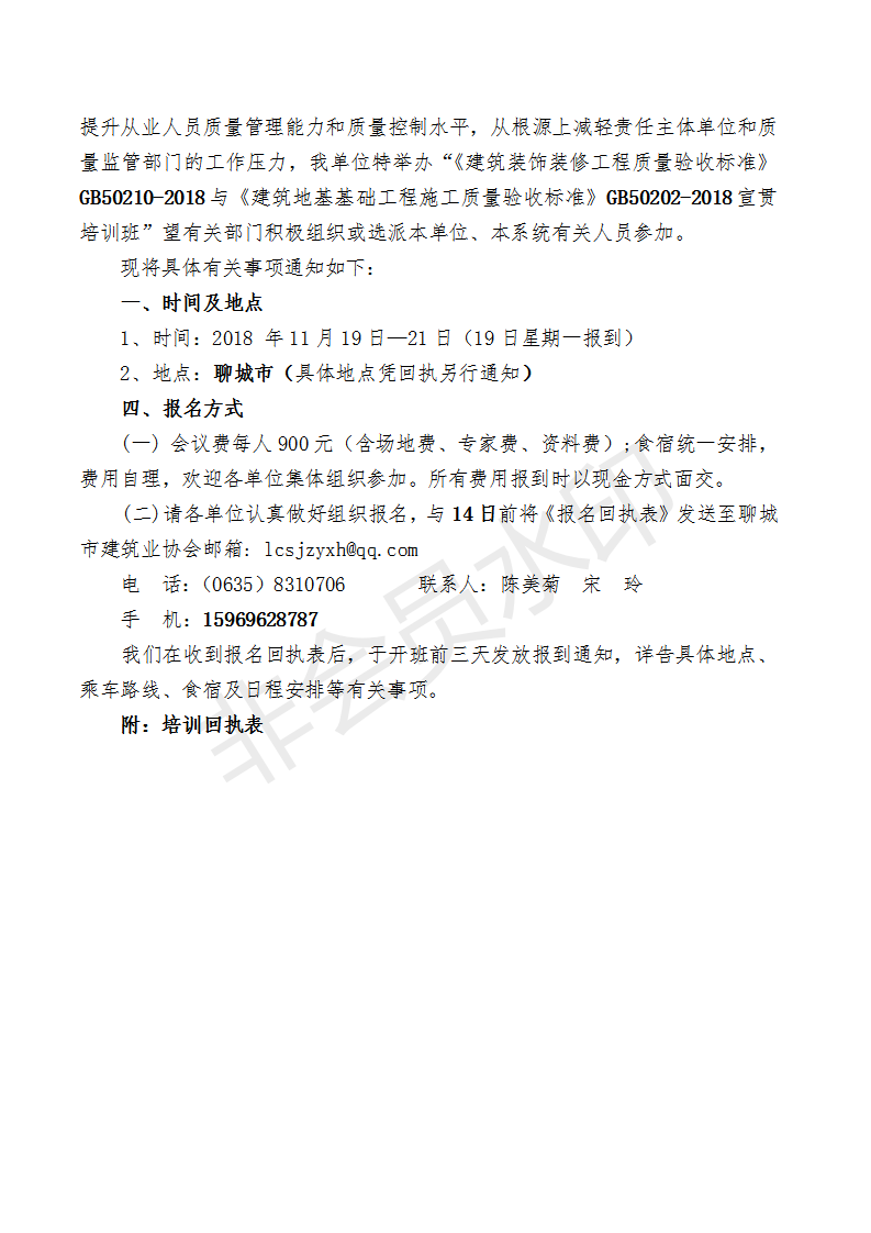 關(guān)于舉辦“《建筑裝飾裝修工程質(zhì)量驗(yàn)收標(biāo)準(zhǔn)》GB50210-2018與《建筑地基基礎(chǔ)工程施工質(zhì)量驗(yàn)收標(biāo)準(zhǔn)》GB50202-2018宣貫培訓(xùn)班”的通知